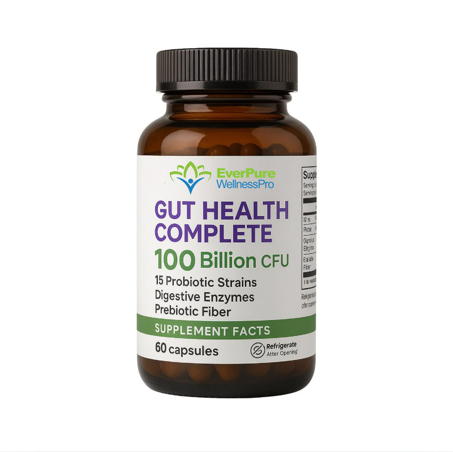 Comprehensive digestive support with 100 billion CFU probiotics, digestive enzymes, and prebiotic fiber. May help support digestive health, gut