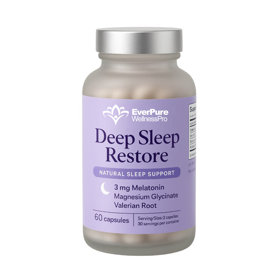 Natural sleep support supplement with 3mg melatonin, magnesium glycinate, and valerian root. May help promote restful sleep and support