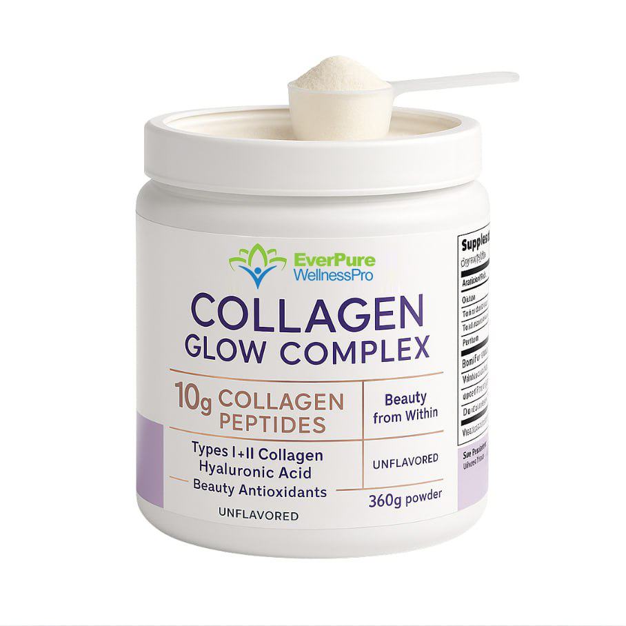 Premium collagen powder with 10g collagen peptides, types I & II collagen, hyaluronic acid, and beauty antioxidants. May help support skin