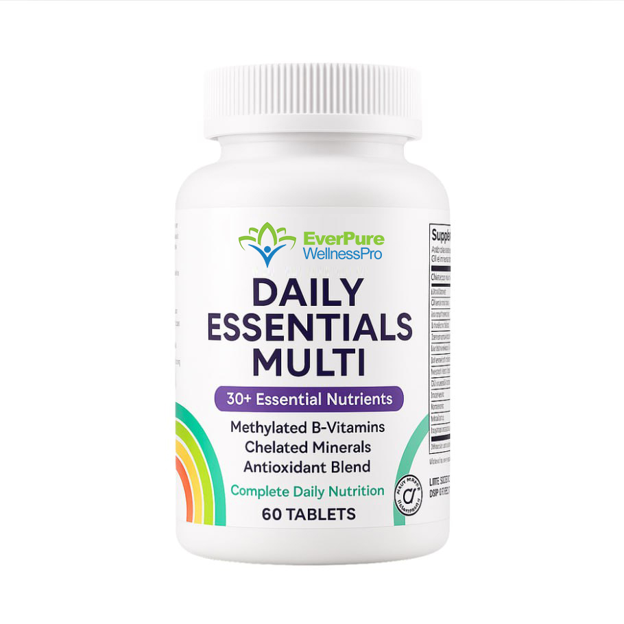 Complete multivitamin with 30+ essential nutrients including methylated B-vitamins, chelated minerals, and antioxidant blend. May help fill